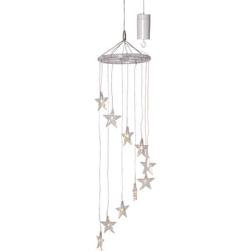 Uro med LED-stjerner – Dekorativ belysning til ude og inde Mobilo fra Star Trading er en dekorativ uro med stjerner, der skaber en rolig og drømmende stemning både ude og inde. Uroen er 80 cm høj og har 10 transparente stjerner, hver med en varm hvid LE
