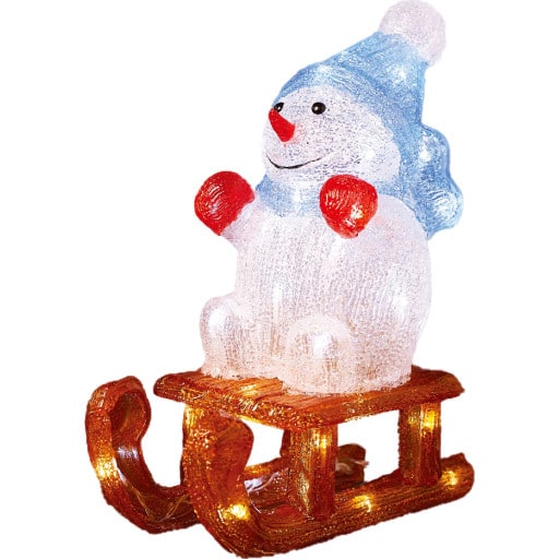 Veli snemand på kælkEn snemand på kælk fra Veli Line. Er godkendt til udendørs brug. Lyser flot i mørket med 40 LED lys. Måler 27x14x32 cm. Stil den på kommoden sammen med dine andre juledekorationer. Her vil den stå og pynte rigtig fint i december måned.